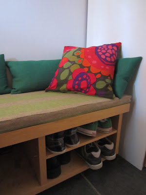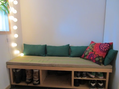 Sv: Skrytetråden for interiørhjørnetHar laget entrebenk, av en gammel tv-benk fra Ikea. Slik så den ut, før og var egentlig et møbel vi tenkte kvitte oss med.