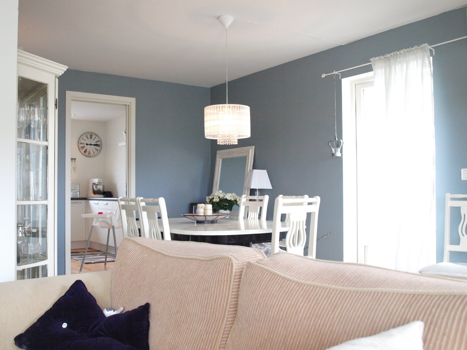 Sv: Er lilla/aubergine o.l. på vegg helt ut?Vi malte spisestuen for noen måneder siden, i en nydelig blå farge som heter "Prismegrønn". Hvorfor den heter grønn vet jeg ikke, for den er vitterlig blå!