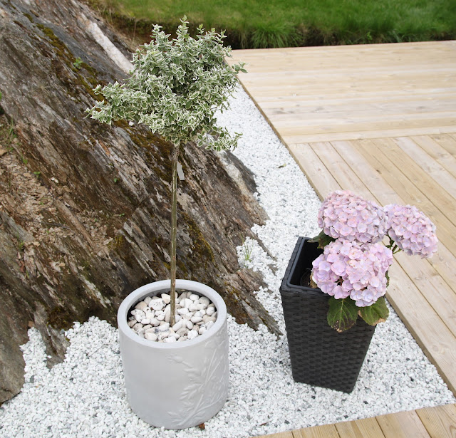 Her vi bor nå, er det dessverre ingen som leverer det, så nå har jeg bark, og jeg hater det. For barken blir fort stygg og må skiftes ihvertfall annet hvert år.