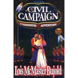 Vorkosiganserien liker jeg også veldig godt, og det som er litt kult med den er at noen av bøkene er thriller, noen detektivhistorier, en er en romanse, osv, selv om det handler om samme person. Problemet med de bøkene er at enkelte av coverene er så seedy at jeg hadde faktisk (jeg som bryr meg til vanlig så lite om hva andre synes) litt problemer med å ta de opp på T-banen.