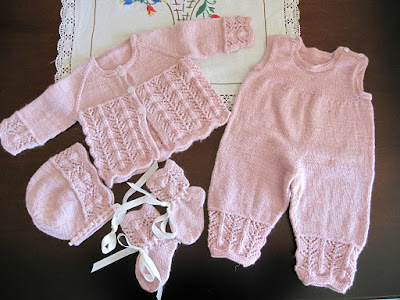 Sv: Tips til babydress/hentesett?Lille Persille hadde dette settet fra Dale, det er i fra det første hentesett-heftet. |