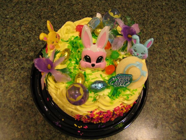 Sv: Påskekake?Hm, jeg vet ikke om den er veldig holdbar, men vår tradisjonelle påskekake er sjokoladekake med krem, pyntet med hermetiske ferskner. Jeg er ikke så glad i vanlig krem, så jeg lager Southern Livings seven minute-frosting. Den er også kritthvit, slik at man får samme fargeeffekt.