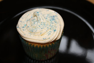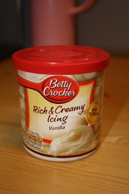 Cupcakes med ekte vaniljeJeg fant en oppskrift på Carrie Bradshaw-cupcakes på www.detsoteliv.no, som vistnok skal være basert på den berømte cupcaken fra Magnolia Bakery som Carrie spiste i serien. Jeg byttet ut vaniljeessensen med vaniljestang, og brukte fløte i stedet for melk. Dette gjør cupcaken saftig, fløyelsmyk, og gir den en fantastisk vaniljesmak. Jeg har ikke brukt den samme frostingen som opprinnelig hører til oppskriften, men har i stedet brukt Betty Crocker vanilla frosting. Denne er fantastisk god, lett å farge, lett å sprøyte, og fås kjøpt i velassorterte matvarebutikker ala Meny, Ica Maxi osv. (Se bilde nederst.)