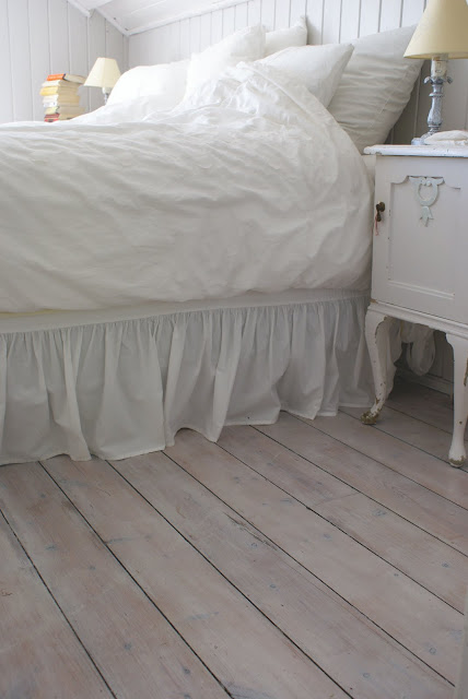 Jeg har hvitoljet ett gulv, og beiset et annet. Det blir fint, synes jeg. Det beisede gulvet trenger av og til et oljelag, men det er fint, altså.