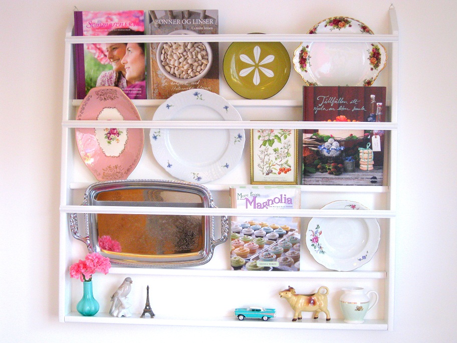 Sv: Hva i all verden har man på stueveggene??Tallerkenhylle med en pen samling fine tallerkener og fat syns jeg forresten er veldig kult. Blande forskjellige mønstre og tidsepoker feks. Eller ha de fineste bøkene i en sånn hylle.
