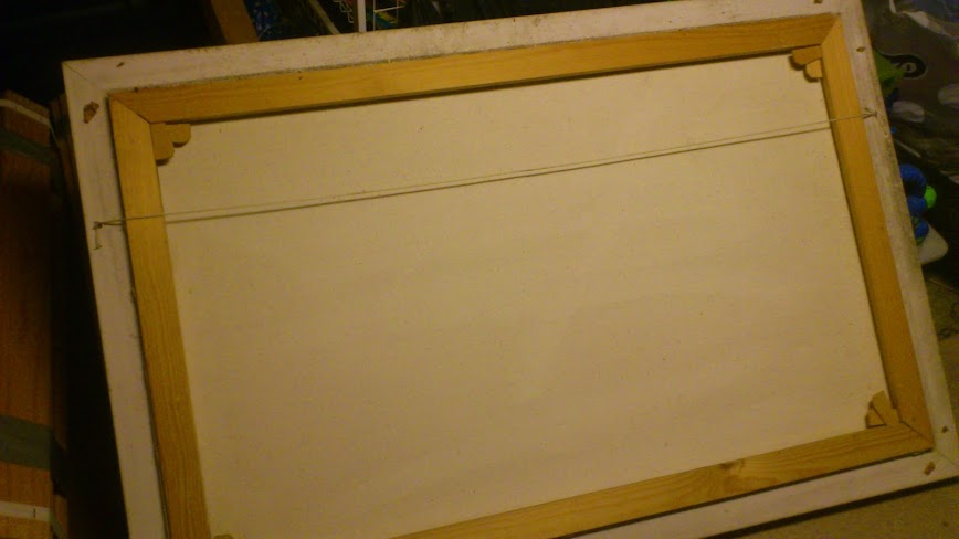 Det første er malt på lerrett, det har treramme, malt i gullsort farge og lerrettet er montert på uten noen foret bakside. Litt tungt.