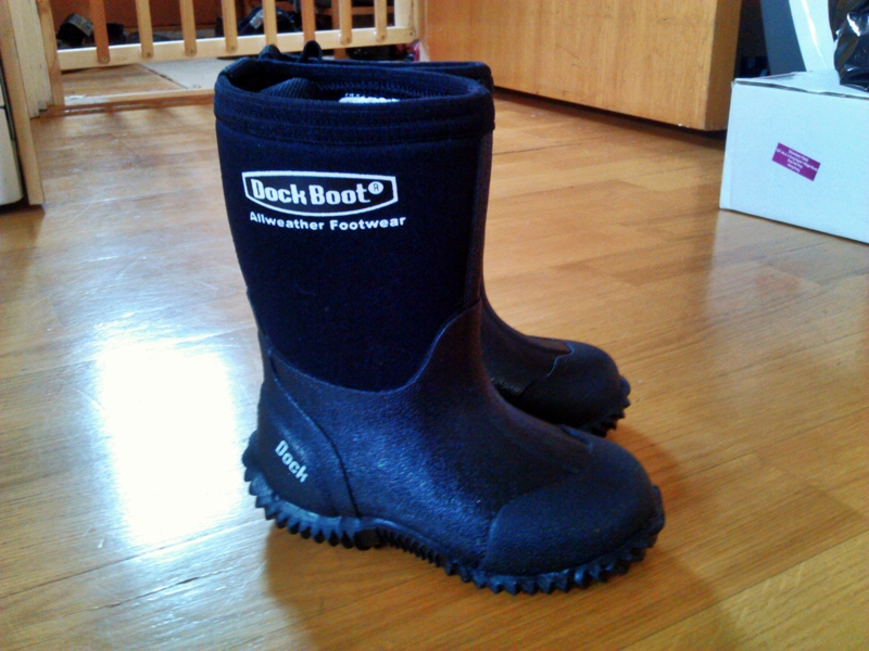 Sv: Vårfottøy til snart-toåringDockboots finnes i to varianter. En med gummi opp til anklene, og en med gummi opp til skaftet. De siste er best for unger som bader i dammer. De andre holder rimelig bra, så lenge man har bukse over.