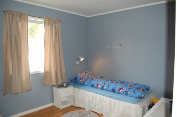 Sv: Fine lyseblå veggfarger og tapet til ungdomsrom?Vi har malt hele soverommet vårt på hytta i Byge. Den er kanskje litt for mørk for Hiawata, men dersom tapeten er helt lys blir det kanskje ikke for mørkt. Jeg elsker den fargen!